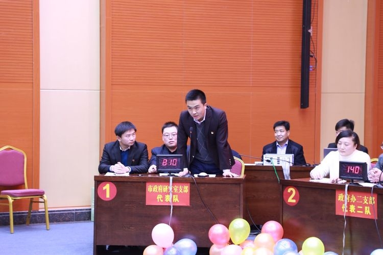 市政府办公室党总支部下属三个机关党支部组建的6支参赛队伍和市政府研究室党支部组建的1支参赛队伍参加了本次知识竞赛。7支参赛队伍的队员个个精神抖擞,斗志满满,展现了市政府办公室及市政府研究室干部职工的良好精神风貌。